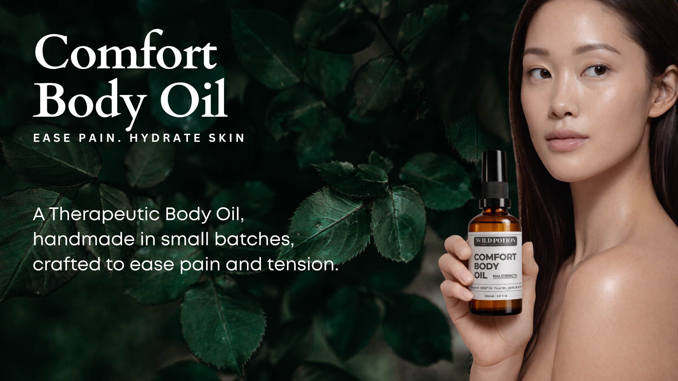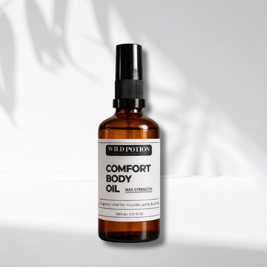 Comfort Body Oil (max strength) is designed to bring targeted relief and ease through a considered blend of cooling, warming, and soothing botanicals.